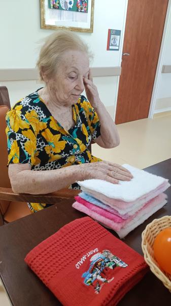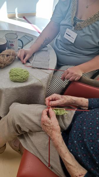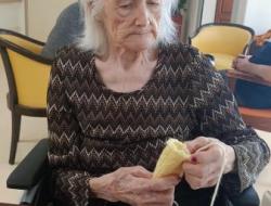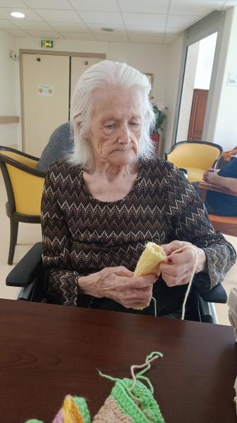 Angélique a également fait de jolis progrès : elle a appris à réaliser des changements de couleurs au tricot, grâce aux précieux conseils de Mme Thomas.