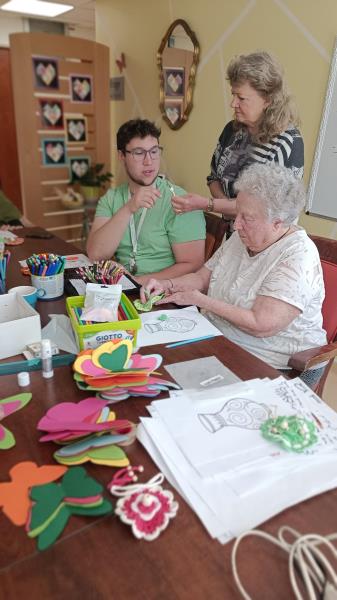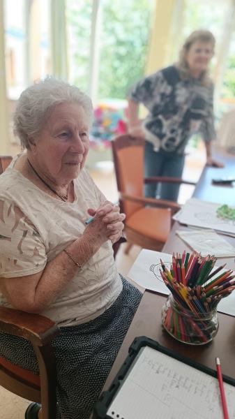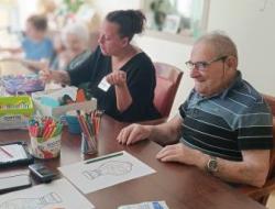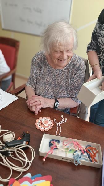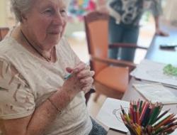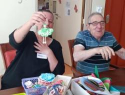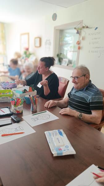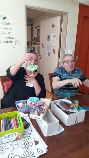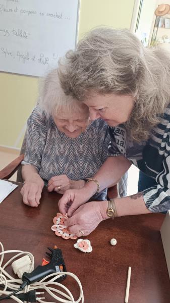 Nous poursuivons notre semaine avec un jeudi sous le signe des activités manuelles, où nous sommes toujours dans la réalisation d’une future fresque. Ce jour-là, avec Sylvie, nous avons crocheté des petites poupées de différentes couleurs, et chacun a pu les assembler à sa guise et surtout repartir avec.