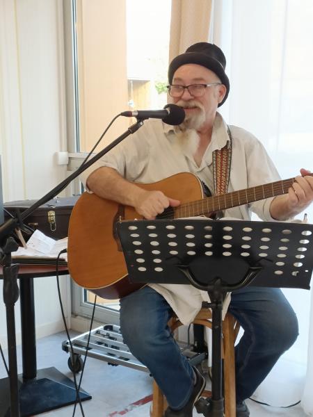 La fête a été rythmée par un moment musical tout en douceur, avec Pascal Leclcerc et sa fidèle guitare acoustique, qui a su émouvoir et faire chanter les résidents. Sourires, rires et souvenirs partagés ont ponctué cet après-midi plein de tendresse.